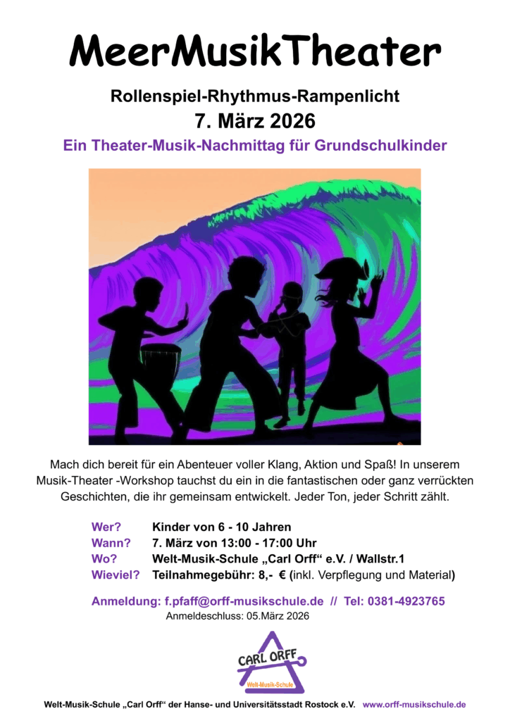Du möchtest Klang, Aktion und Spaß nicht hinterm Bildschirm erleben, sondern mittendrin sein? Dann melde dich für unseren Theater-Musik-Nachmittag an!