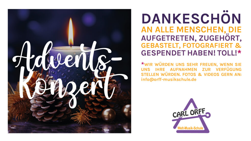Um 16 Uhr werden Orff-Schüler*innen ebenfalls mit einem vielfältigen Programm auf die beginnende Weihnachtszeit bei unserem Adventskonzert einstimmen.