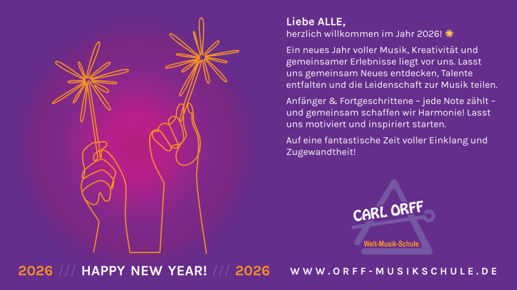 Die Welt-Musik-Schule „Carl Orff“ e.V. wünscht allen Schülerinnen und Schülern, Eltern, Freuden und Förderern ein gesundes, glückliches, zufriedenes, inspirierendes und klangvolles Jahr 2023.