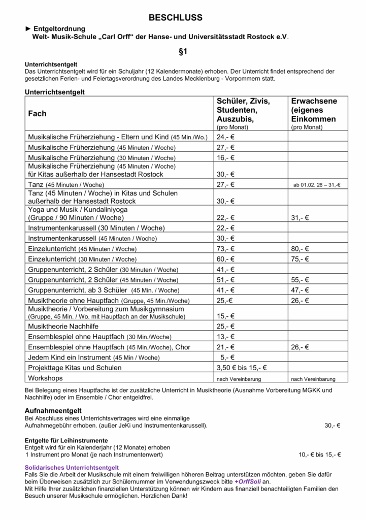 Gern möchten wir in diesem Zusammenhang freundlich auf unser solidarisches Entgelt hinweisen, welches besonders Kindern aus finanziell benachteiligten Familien zugutekommt: